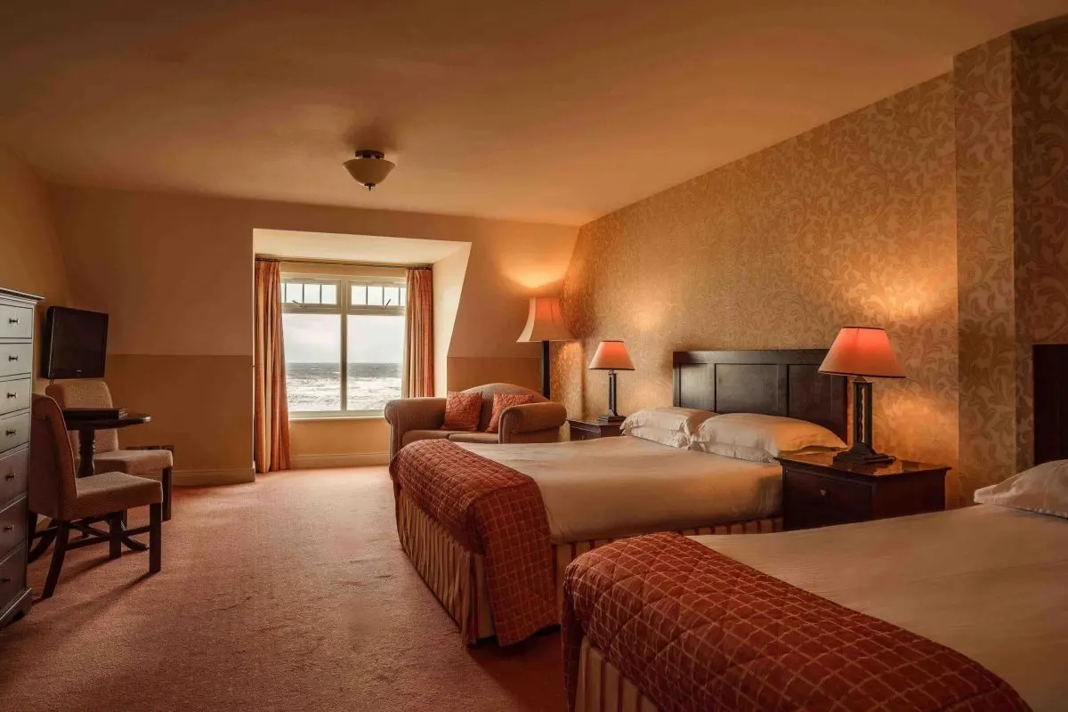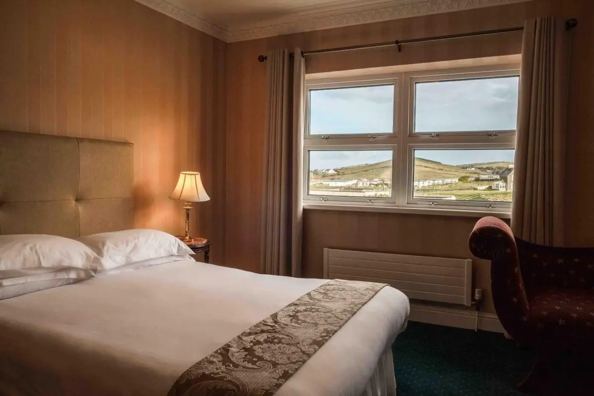 A 19th-century manor house perched right on Blue Flag Rossnowlagh Beach, about 20 minutes from Donegal Town. Rooms overlook miles of Atlantic coastline, the Seashell Restaurant serves fresh local seafood with AA rosette recognition, and the Marine Spa offers seaweed wraps, massages, and a hot tub. The Britton family have been welcoming guests here for over 50 years — and it shows in every detail.